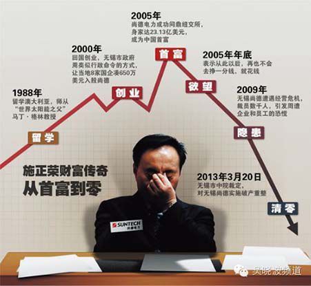有报道称,今天的施正荣仍然是一位身价超过10亿美元的“隐形富豪”。不过,可以肯定的是,他的企业家信用已然彻底破产了,在他的有生之年,恐怕很难在中国市场上做成一单生意。