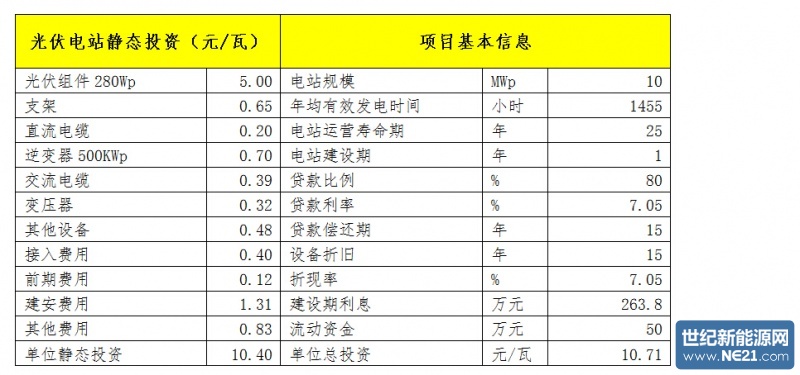 以当前西部武威地区2012年下半年并网的10MW规模的地面光伏发电项目为例: