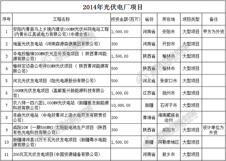 多位业内人士预计,如若按期完成13GW装机目标,下半年或将进入一轮光伏电站抢装潮。而据记者独家获悉,2014年全国新建光伏电厂项目114个,且绝大部分为大型项目。