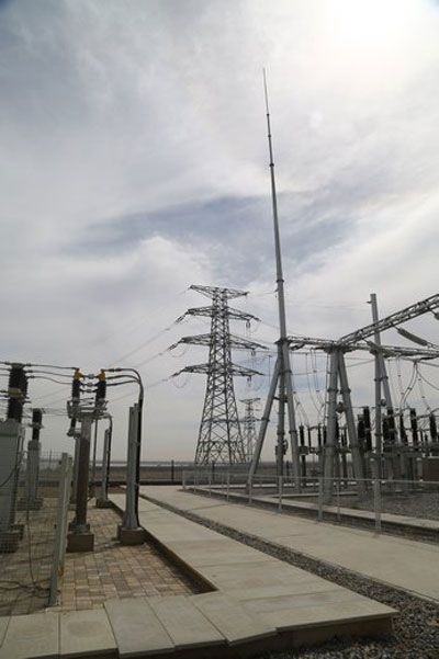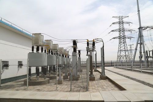 图为发电站的增压器,光伏电增压后将被纳入国家电网