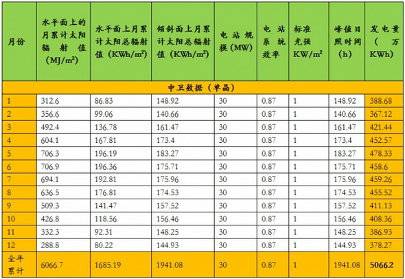 众所周知,单多晶电站的收益取决于两个方面。第一,光伏上网电价;第二,结算电量。前者取决于国家政策,后者则取决于电站实际发电量。为此我们模拟了宁夏中卫地区的单多晶发电情况。