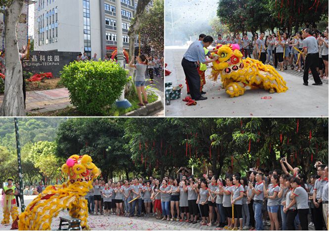 三晶电气各级领导都出席了此次庆典。典礼开始,公司总经理卢总发表了欢迎致词,并亲手为象征吉祥福气的舞狮点睛。亲眼见证公司的新里程,大家的心情都十分激动。在新环境工作的员工们尤为兴奋,对“新家”喜爱有加。新厂房宽敞明亮,简洁大气,窗明几净,伫立在窗前青山绿水,美不胜收。
