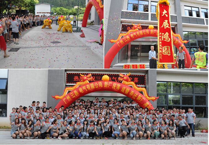 索比光伏网讯:2014年9月1日,在这个夏花灿烂,阳光明媚的日子,三晶电气举行了隆重的乔迁典礼。随着鞭炮声,锣鼓声,公司高层举行揭幕仪式,标志着三晶电气正式乔迁至三晶科技园,公司的发展开启了新的篇章。这一天,三晶科技园大门前鼓声震天,人群涌动。洋溢着喜庆的红色充气横幅上立着金灿灿的大字:广州三晶电气有限公司新厂房落成暨乔迁新厂典礼!公司上下分外喜庆,条幅飘扬,还有隆重的舞狮表演,汇聚成一片欢乐的海洋。