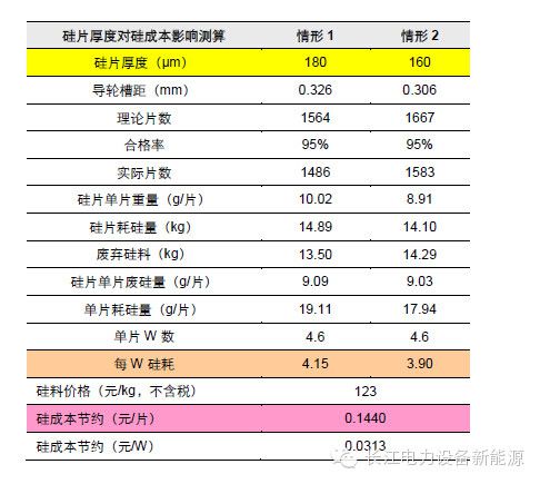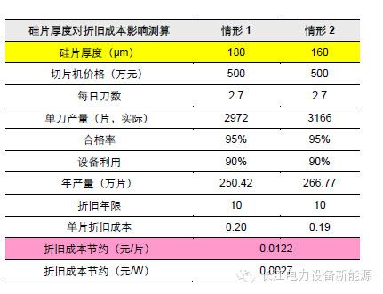 我们根据硅片切割成本与参数,简单估算薄片化对硅成本、单位折旧、单位电费等成本的影响。