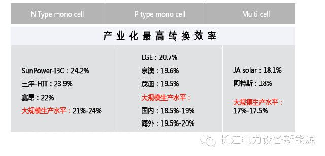 目前全球量产多晶的转换率在17.5%-18%左右,P型单晶转换率在18.5%-19.5%左右,N型单晶转换率在21%-24%左右。目前多晶转换率已接近极限,单晶则仍有较大的提升空间,从这点看,单晶未来也更具发展空间。