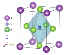 钙钛矿的结构是ABX3的形式。这种结构在每个角共享一个BX6正八面体,其中B是金属阳离子(Sn2+或Pb2+),X是一价阴离子(Cl-,Br-或I-)。钙钛矿中的阳离子A被用来抵消电荷使材料达到电中性,它可以是半径较大硷金属离子等,甚至可以是一个分子。