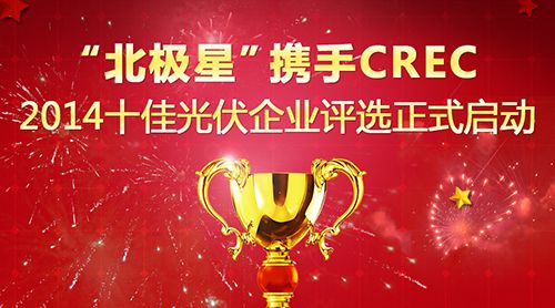 2014“北极星杯”CREC年度最受欢迎十佳光伏企业评选活动是由北极星太阳能光伏网、北极星电力网联合主办,CREC组委会承办,得到了《中国电力报》、《中国工业报》、《机电商报》、搜狐网(绿色)、中国新能源网、5e新能源网、中国经济网、比特网等二十余家媒体的大力支持与热情参与。2014“北极星杯”CREC年度最受欢迎十佳光伏企业的颁奖活动将与CREC组委会联合举办,届时评选获奖的70家企业将在CREC2014中国(无锡)国际新能源大会暨展览会的答谢晚宴上拉开颁奖序幕。