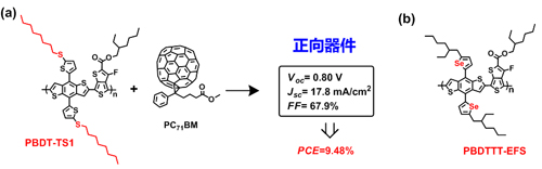 图1 新型两维共轭聚合物PBDT-TS1的分子结构及其器件性能