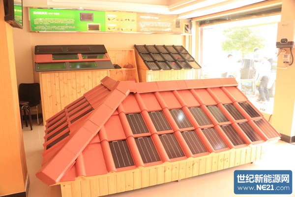 记者在现场看到,该体验店的门头上安装了一排会发电的瓦片,非常美观。边上还安装了三块光伏组件,这些光伏瓦片和光伏组件所发的电可以直接供店里的空调、照明等设备使用。