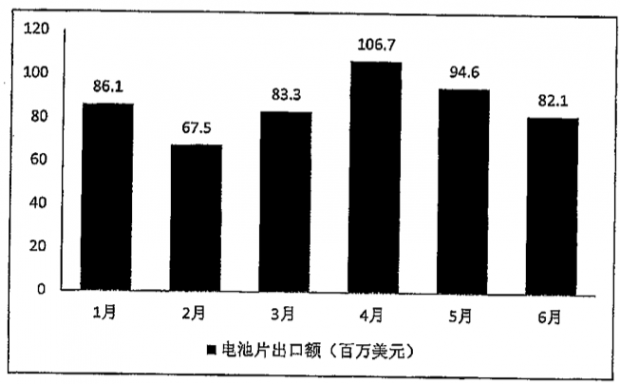 2014年1-6月电池片月度出口情况,数据来源:中国光伏行业协会秘书处
