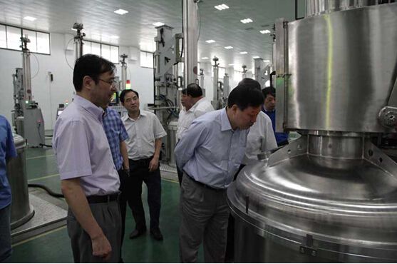 朱共山董事长仔细察看晶体生长情况