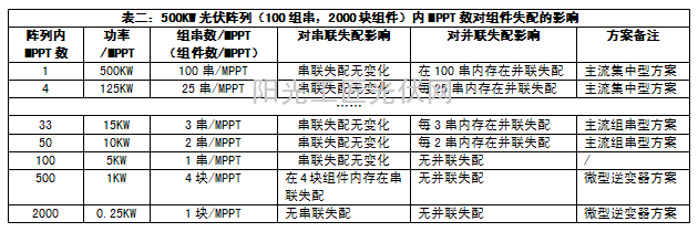 通过采用多MPPT方案可以降低光伏阵列内的组件失配影响。采用组串型方案可以一定程度解决并联失配,但对串联失配无影响;采用微型逆变器方案可以同时解决并联失配和串联失配。