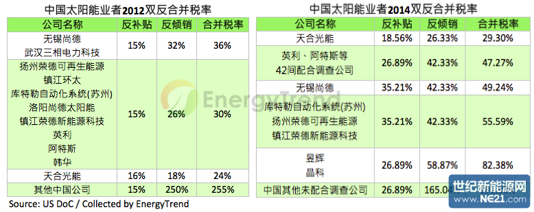 TrendForce旗下新能源事业处EnergyTrend研究经理黄公晖指出,相较于2014年中美双反版本最初提出的范围,此次修改简化了判断依据,加强封堵中国制组件。原先范围中,若中国制组件采用非中国硅片及非中国、台湾制电池片,可能可以顺利避免双反课税;但本次提出的调查范围修改,对先前被判以高额税率的厂商如英利、尚德、晶科等不利。若这些公司仍选择在中国生产产品,则势必要用自产电池片。以2012年的税率应对,对台湾以及第三地电池片的采购需求将大幅缩减。