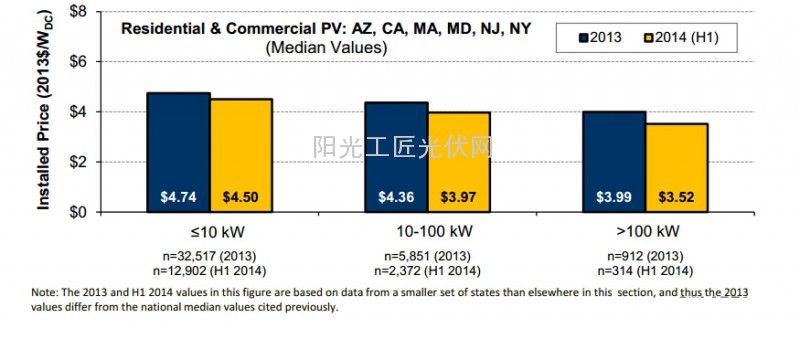 “不过,报告发现,鉴于诸多因素(例如基于本土竞争程度的价值基础定价及通行的电力零售率),在不同地理位置与细分部门价格存有显著差异。”他继续说道,“其他因素还包含特殊系统设置方面的差异(例如电池板效率、安装结构及地理位置)及针对公共事业级系统的承诺与商业运营间的时间滞差。”