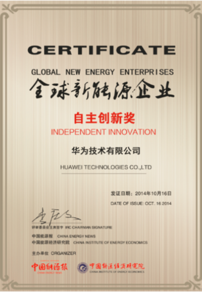 索比光伏网讯:10月16日,由《中国能源报》、中国能源经济研究院共同联合中国新能源产业投资基金主办的“第四届全球新能源发展高峰论坛暨2014全球新能源企业500强”大会在京举行。人民日报社副社长张建星,国家能源委专家咨询委员会主任张国宝,中国能源报社社长李庆文出席会议并作了重要讲话。本届峰会共吸引了来自政府、行业、企业近百余人参加,并就新能源发展问题进行了探讨与交流。华为也受邀参加了此次大会。并凭借智能光伏电站解决方案给行业带来的革命性创新和成果被大会授予了自主创新奖。