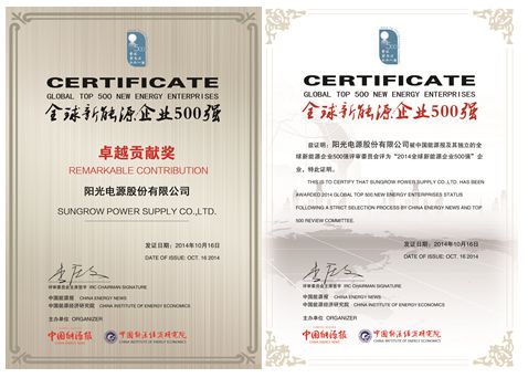 原标题:2014年全球新能源企业500强榜单揭晓,阳光电源四度蝉联