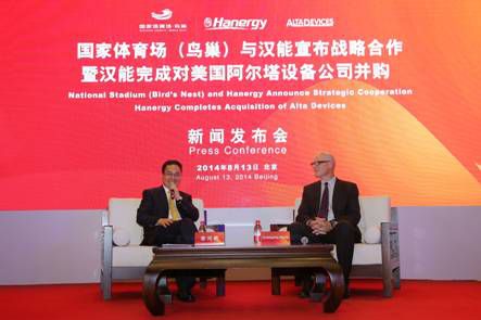 除了CIGS薄膜技术之外,汉能还在补足自己在薄膜技术其他领域的短板。曾屡创柔性砷化镓(GaAs)太阳能电池转换率记录,却又财务状况不太好的AltaDevices(阿尔塔设备公司),自然被汉能看在眼里。阿尔塔能够生产世界上转换效率最高的柔性砷化镓(GaAs)太阳能电池片,产生的效能比单晶硅技术提高8%,比多晶硅高出10%;相同面积下,其产生的效能可达普通柔性太阳能电池的2到3倍,单结电池片效率为28.8%、双结电池片效率达到30.8%,这也是薄膜太阳能电池技术转换率最高的世界纪录。2014年8月13日,汉能控股集团宣布完成对美国阿尔塔设备公司(AltaDevices)并购。汉能控股集团连绵5个多月的第四家海外收购终于落定。