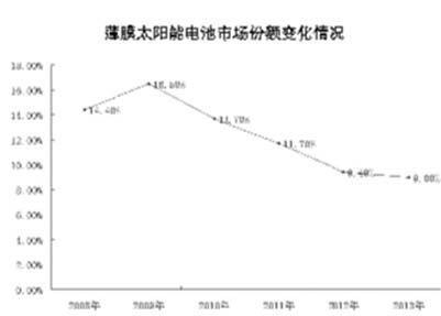 和2009年16.5%的市场占有率相比,薄膜电池已经几乎失去了自身的小半壁江山。
