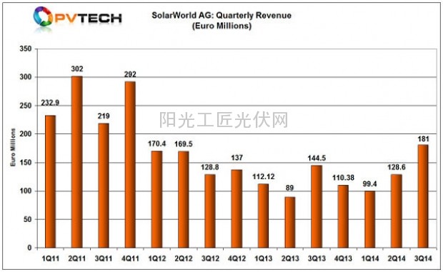 该公司报告,2014年第三季度收入为1.81亿欧元,较上季度第二次美国反倾销裁决之前1.286亿美元有所提高。