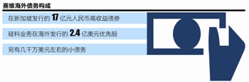 公告还披露了赛维海外债务的构成,主要来自两笔:第一是在新加坡发行的17亿元人民币高收益债券,第二笔是硅料业务在海外发行的2.4亿美元优先股。除了这两笔以外,还有一些小的债务,规模在几千万美元左右。