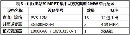 在荒漠电站中,由于在初始投资、运维经济性和便利性、以及电网接入友好性方面的显著优势,适合选用集中型逆变器方案。以1MW单元为例,典型的荒漠电站集中型方案配置如表2所示,系统图图1所示。