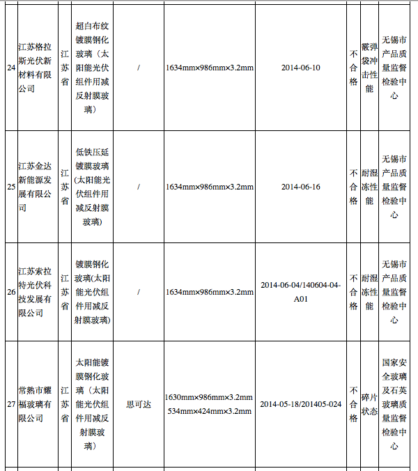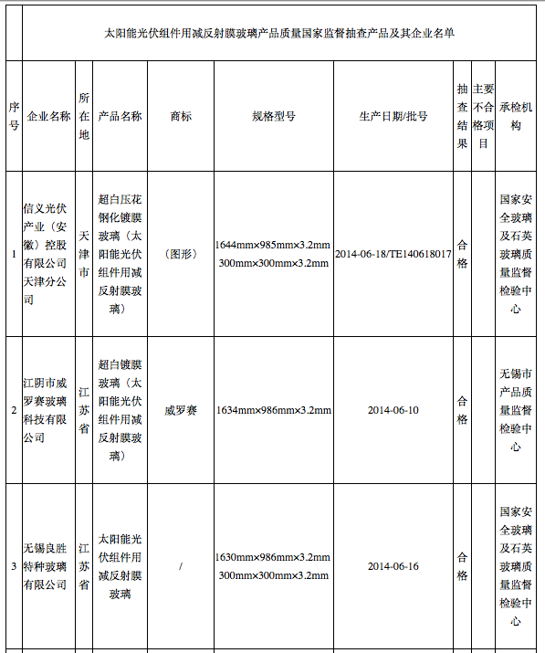 原标题:质检总局:太阳能光伏组件用减反射膜玻璃产品抽查结果公示(名单)