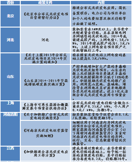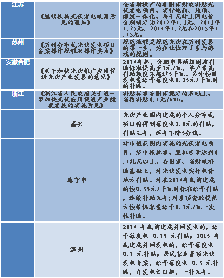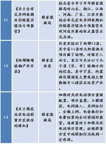 自2013年7月国务院出台支持光伏产业发展的政策以来,国家能源局、各级地方政府相继积极制定配套政策措施,现将2013-2014年国家能源局、地方发改委相继发布的促进光伏产业的有序发展要点政策梳理如下,供业内关注政策的同仁参考。