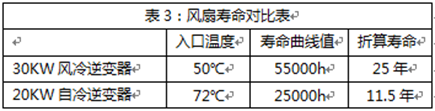 在最恶劣的情况下,30KW风冷逆变器风扇可运行27.5年。另外,考虑雨天、以及环境温度低于50℃等因素,风扇的运行寿命将更长。