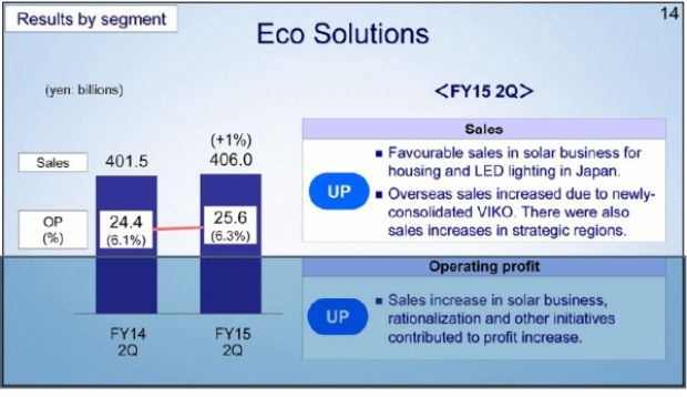 松下还指出,其太阳能业务的盈利能力还由于成本“合理化”结合销量增加。