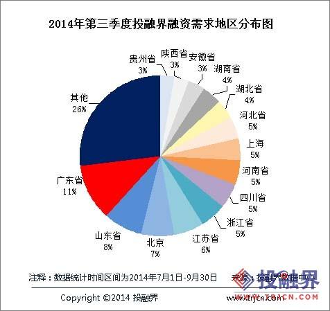 据图3图4显示,2014年7月-9月,融资需求较为密集的地区与以往保持一致,主要有广东、山东、北京、江苏、浙江。