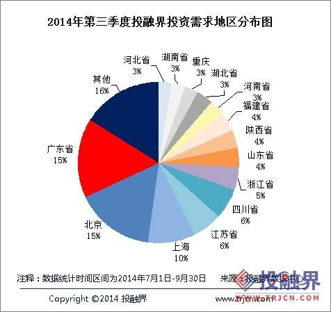 下一页>而投资需求较为活跃的省份有北京、上海、江苏、四川、浙江,与2014上半年投资活跃地区相比,北京、上海、四川等地活跃度上升较快,北方活跃省份数虽然相对较少,但凭借北京地区15%的份额就已经占据了整个投融资市场地区份额很大部分。由此可见,北京不仅是全国企业数量最为集中的地区,也是投资热情最为高涨的地区。