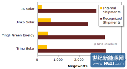 Solarbuzz高级分析师廉锐表示:“2014年第三季度,占全球约三分之二市场份额的20大组件供应商组件总出货量接近8GW。这一季度出货量水平创下了这20家供应商的新纪录,虽然在此期间他们还提高了内部项目出货量。”