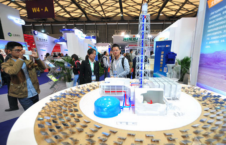 上海电气展台中展出的太阳能热发电模型