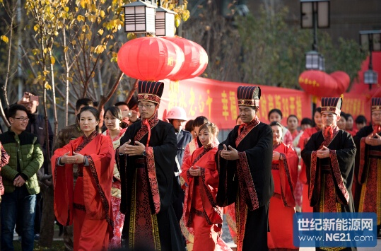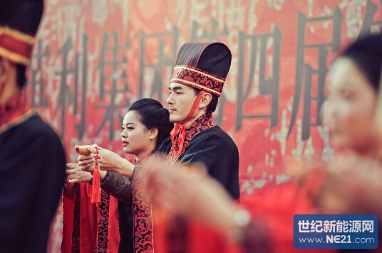 英利集团工会主席张谦表示,举办本次汉式集体婚礼就是旨在通过本次活动让更多的青年员工了解和学习中华民族的优秀传统文化,号召英利广大适龄青年带头倡导“厉行勤俭节约 反对铺张浪费”的社会新风。