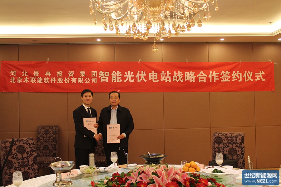 11月21日,北京木联能软件股份有限公司(以下简称“木联能”)和河北景冉投资集团(以下简称“景冉集团”)就智能光伏电站战略合作签约仪式在北京举行。参加签字仪式的有景冉集团董事长兼总裁罗福强先生,景冉集团董事长助理任仙女士,木联能总经理李伟宏先生,木联能河北区总监谭永松先生等。