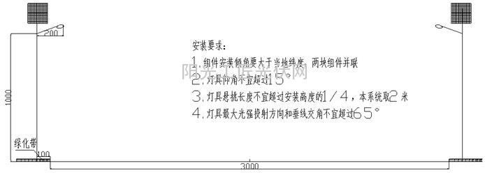 1.灯杆:灯杆安装地点不宜有高大树木,灯杆因安装点应距路边有一定距离。