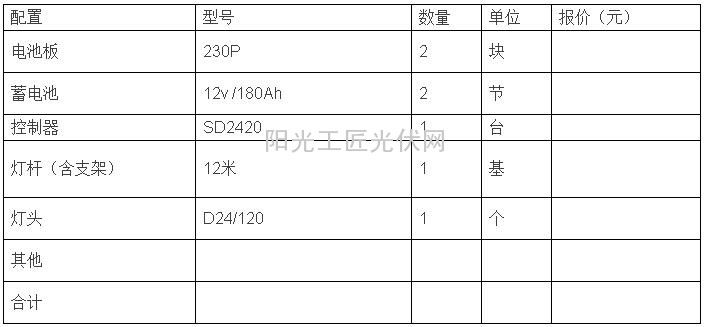 本系统设计过程主要包括:灯杆的选型,灯具的选型,太阳能组件的配置,蓄电池、控制器的配置,系统保护措施设定。