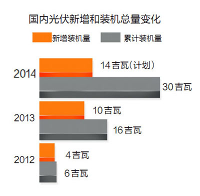 国家能源局11月20日发布数据,今年前三季度,全国光伏发电量约180亿千瓦时,相当于2013年全年发电量的200%。前三季度,全国新增光伏发电并网容量379万千瓦,其中,新增光伏电站并网容量245万千瓦。业内专家分析认为,虽然前三季度新增光伏并网容量仅3.79吉瓦,但全年完成新增装机10 吉瓦没有问题,总数或达12吉瓦。因素之一是抢装潮已经来临。