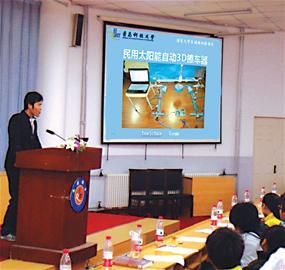 李瑞说,毛刷的材料只是整个结构的一环,整个擦车装置上,不仅有木质结构,还有各种机械设计。为了完成这些组件,李瑞他们全部成了“蓝领”,给木板钻孔、打磨螺丝、焊接结构……几乎把所有的工种都干了一遍,遇到夏天最热的时候,几个小伙子干脆赤膊上阵。经过连续2年的努力,这一太阳能擦车装置终于出炉。根据前期测算,接上一块太阳能电池板,仅仅20分钟左右,擦车装置就能让一辆脏车焕发新颜。在今年8月份举行的山东省大学生机电产品创新设计大赛上,这一作品取得了优秀奖。