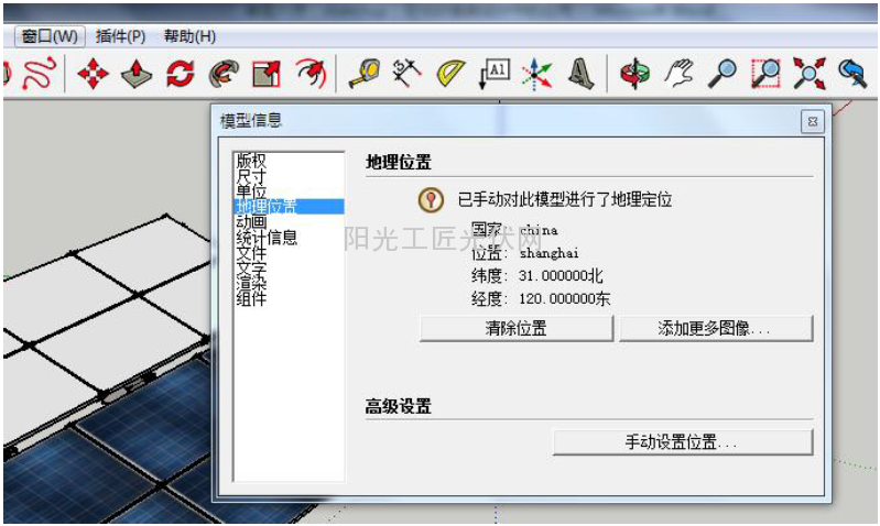 注:关于阴影设臵:注意请用真太阳时,即当地时间