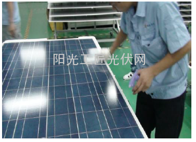 在最后清洁镀膜面时时,如发现膜面上有异物,请将酒精喷在镀膜面上,用干净的无防布轻轻擦拭玻璃表面。(作者微信公众账号:光伏经验网)