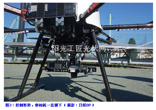 相机能控制着一直朝着正下方(图3)。例如,即使机器人的姿势在飞行中改变,由于相机一直朝着下方拍摄,也能保证图像的均一性。