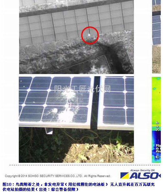 首先将开始提供能以短时间、高效率发现太阳能电池板输出异常的服务。这样,综合警备保障公司面向百万瓦级光伏电站的服务,就有可能突破原来的警备范畴,扩大到平时的O&M(运行、维护)领域。