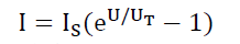 P-N结两端的电压U和流过P-N 结的电流I之间的关系为:
