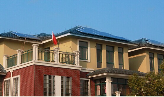 嘉兴秀洲区沙家浜社区屋顶上的太阳能电池片