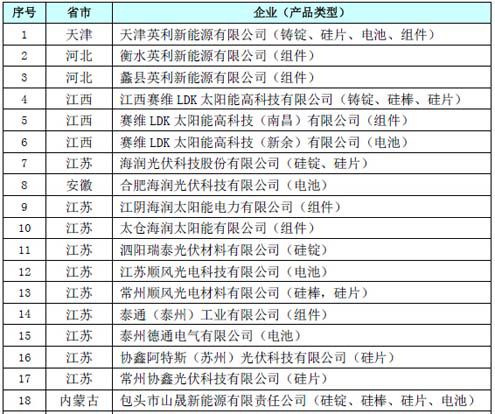 180家企业入围工信部第一、二、三批光伏“准入”名单(表)