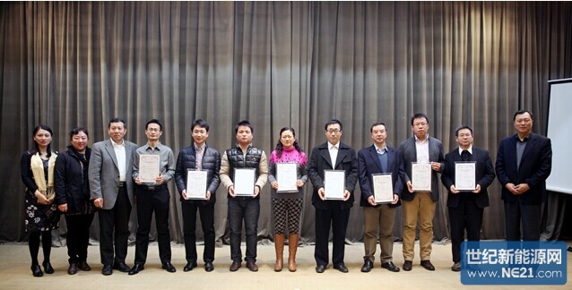 SEMI中国光伏标准技术委员会自2012年召开第一次会议以来,已经顺利运作3年时间,召开了12次季度会议,发布了6项标准,有22项标准正在起草或等待发布中,产生了29位核心委员,取得了令人瞩目的成绩。SEMI全球副总裁及中国区总裁陆郝安博士(左3)、SEMI中国光伏标准技术委员会主席张光春先生(右1)和刘筠女士(左2),在本次会议上共同向已发布的6项标准编撰单位颁发了证书。