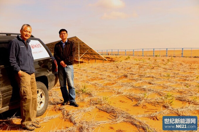 通过“草方格”防沙是中卫的创举,“沙坡头”也因此举世闻名。“航天机电”刚来时,原想采用挖井取水种树的办法,结果井深40米的水不能用,100米的水成本太高。通过请教专家,最后还是采取 “草方格”的办法——把稻草深深地插入沙中构成一米见方的格子,在方格中撒下草种,灰草和骆驼刺就在方格的沙子中顽强地生存下来。看着长了两年、高度在30公分的草丛,老红问:如果再有十年时间,电站的草会不会比“沙坡头”的更丰满?刘琼想了想说:“应当是这样。电站对草的维护会更加精细,电池板的遮阴可以减少水蒸发。”老红好像明白了:“沙坡头”只能防沙,“航天机电”的光伏电站可以治沙,这就是神奇所在。