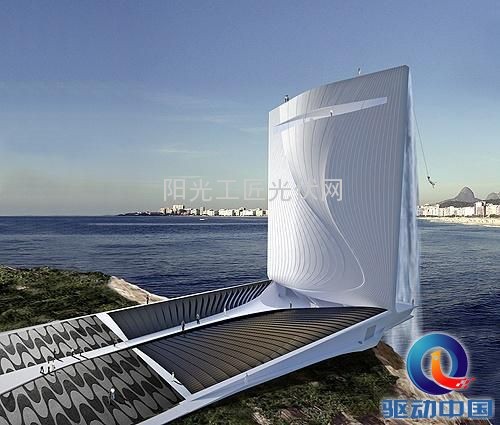 (位于巴塞罗那海滩的ENDESA馆,依靠太阳能电池达到能源自给自足,所以它的设计依循能源的获取方式,南侧开放,北侧封闭,对环境和气候做出恰当的适应和利用。)