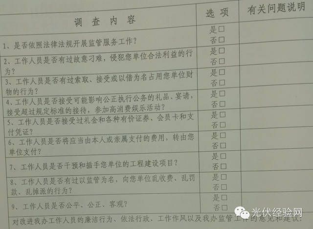 索比光伏网讯:2014年11月,为进一步促进分布式电源项目发展,确保分布式发电优先上网、全额收购和补贴落实到位,国家能源局下属各监管局(办)依据国家能源局《关于印发2014年下半年重点专项监管工作计划的通知》,对国家电网各省、市供电公司进行了一轮廉政调查。